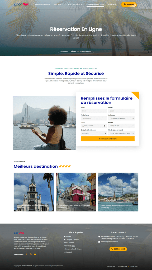 Le design met en valeur le charme des buggies et les paysages paradisiaques de la Martinique, offrant une expérience utilisateur optimale pour tous les visiteurs.